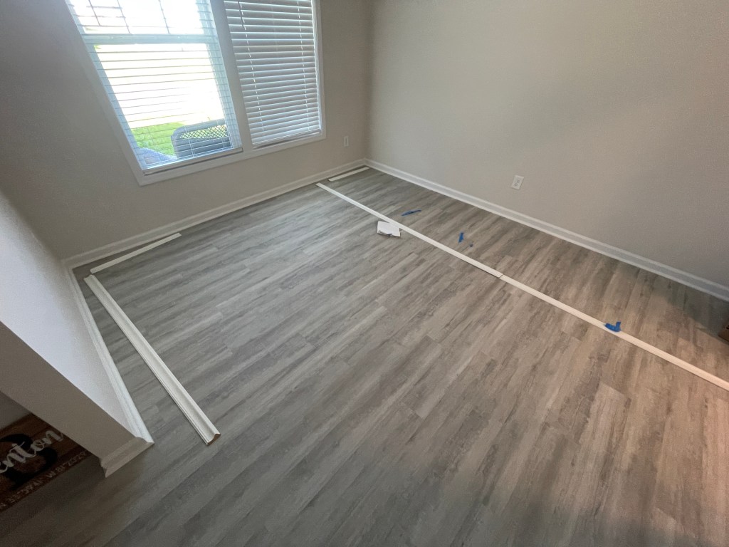 i decided to do some trim work in the sitting room. i’m going to install chair rails, panel boxes and prob crown moulding. haven’t decided on the latter, but probably will. the plan is to paint it too. i have repose grey for the top area and semi gloss white for the bottom.